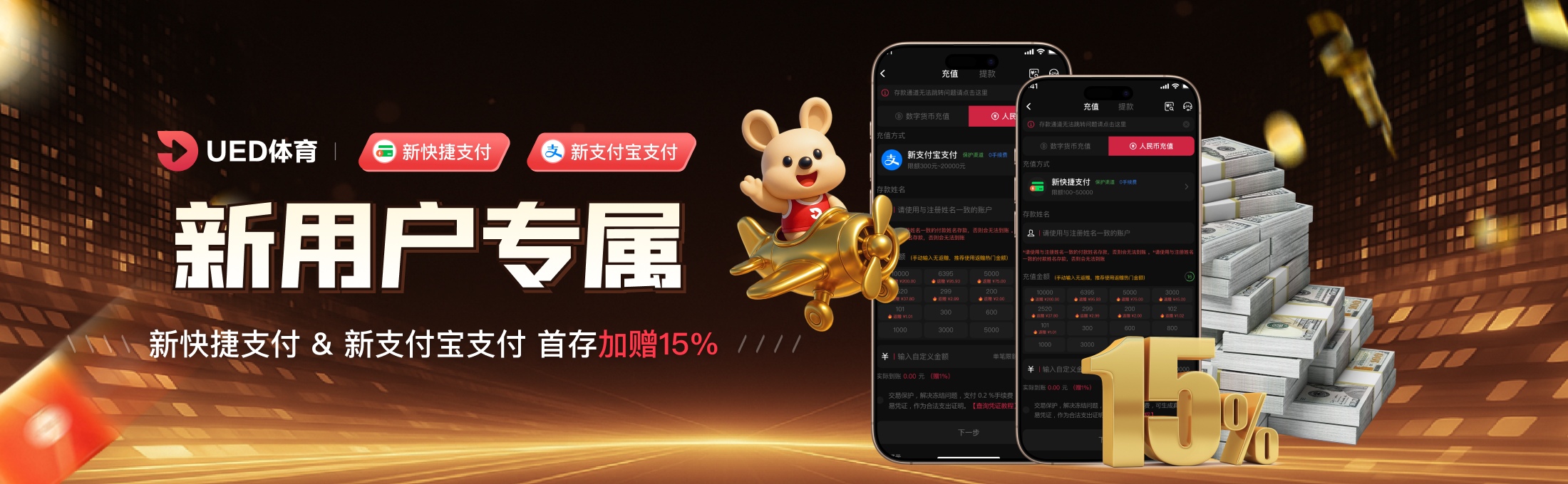 新快捷/新支付宝支付送15%