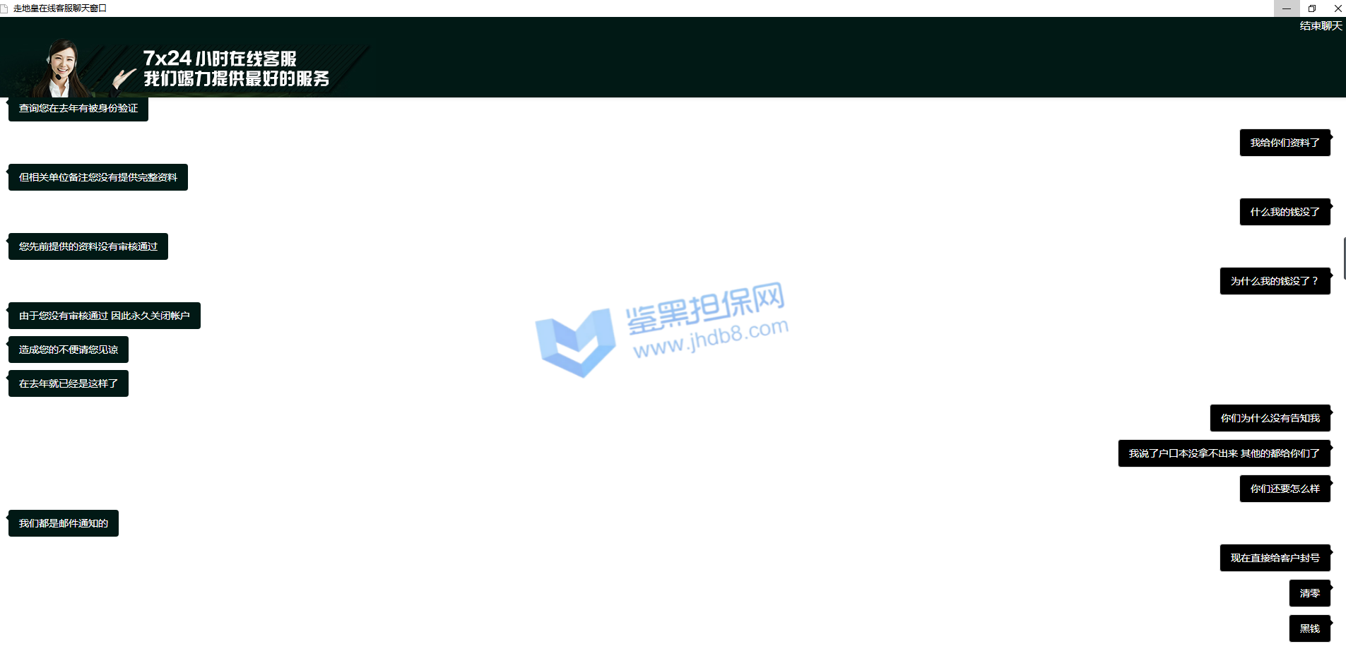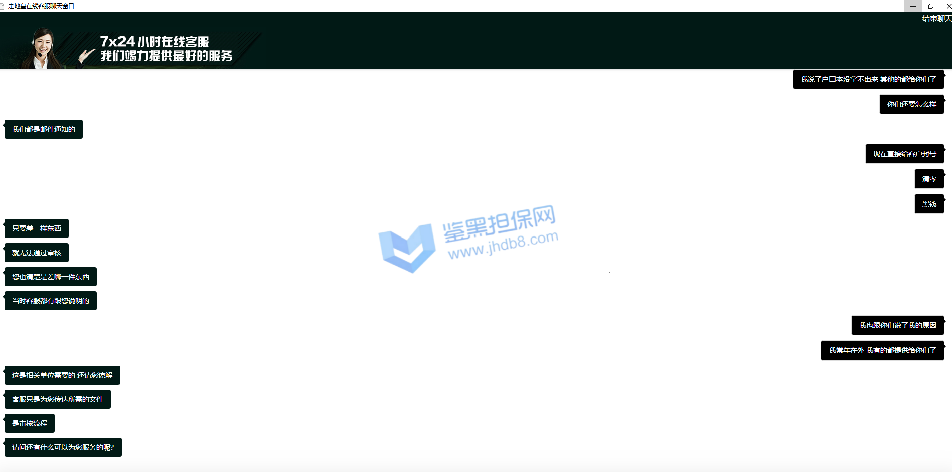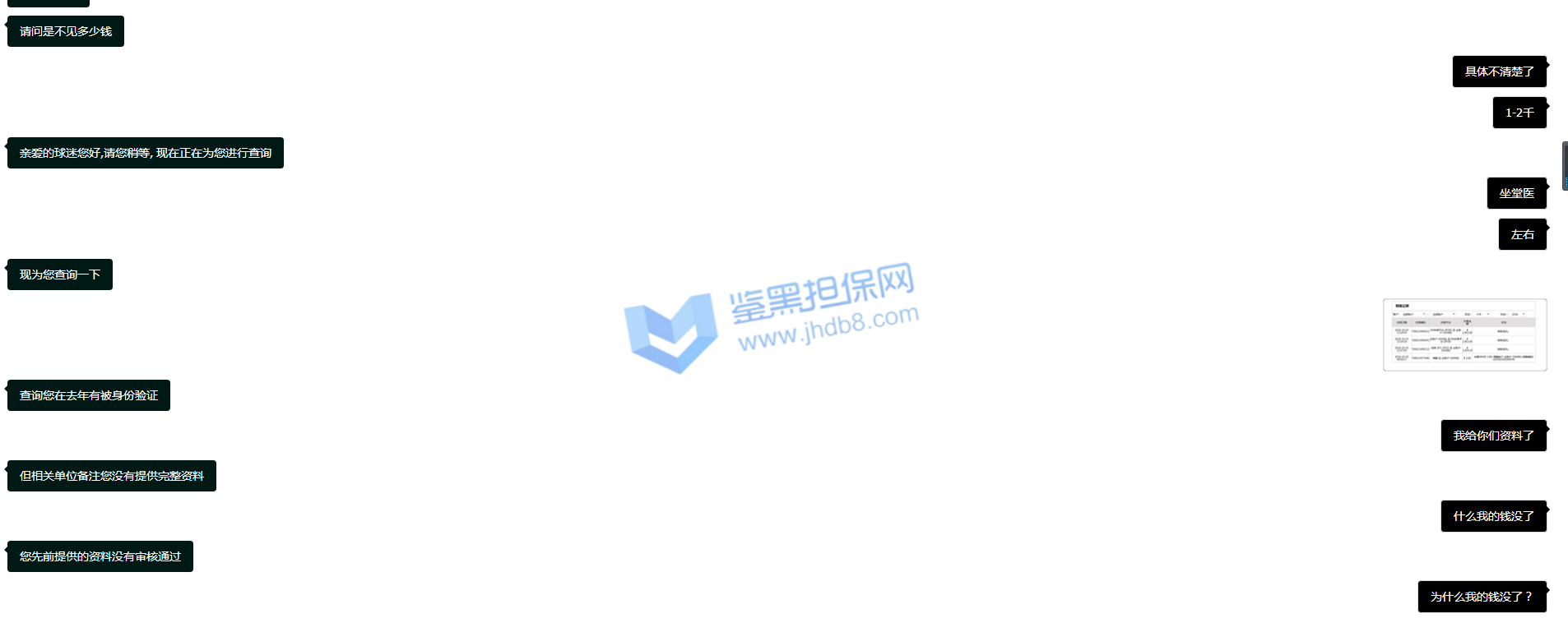3.用户提交维权申请后资料不齐全,需在一周内补齐鉴黑担保网客服要求的资料,若超过一周时间没有完善维权信息,维权将因资料不全拒绝受理;
