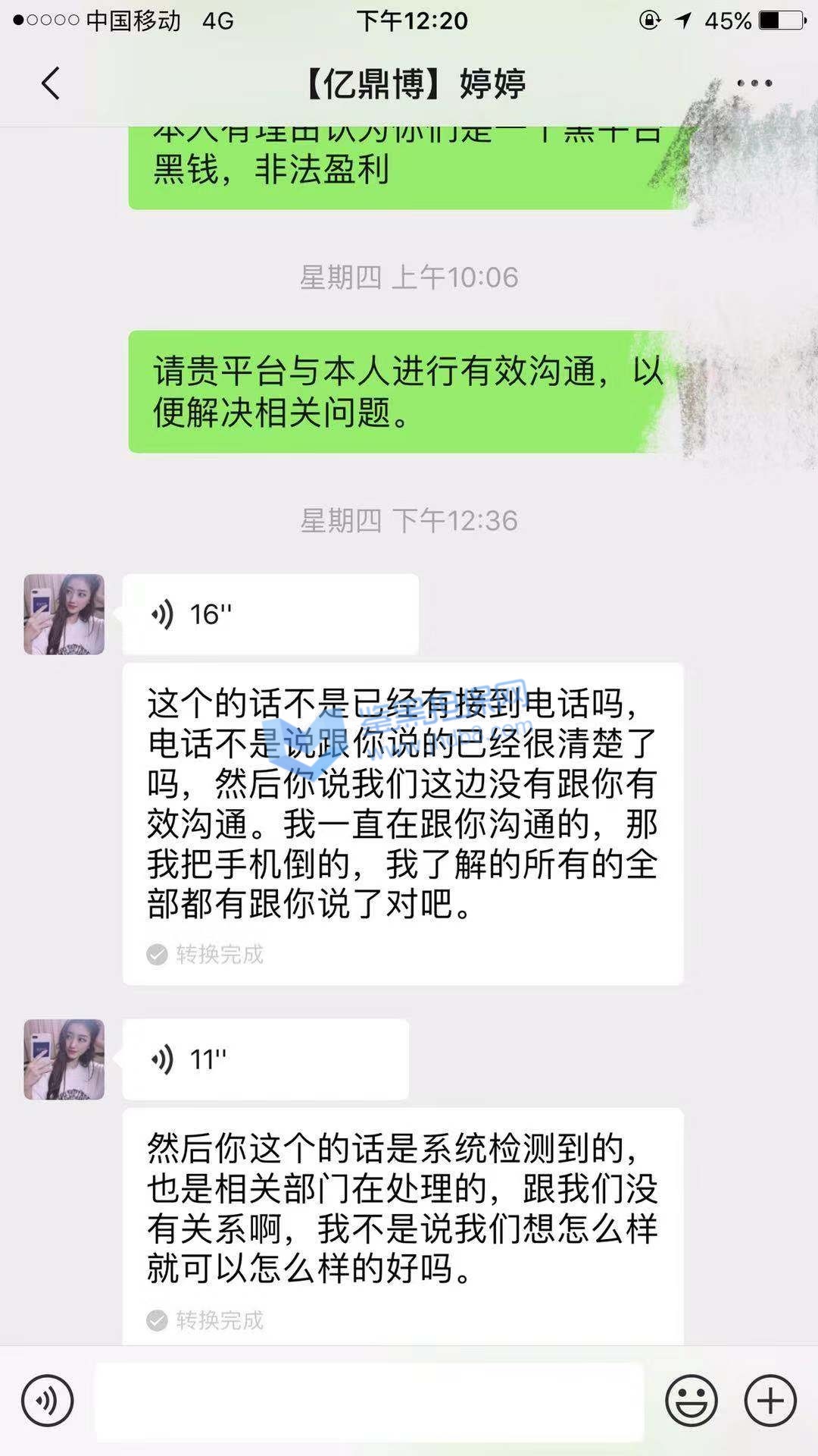 之前逛论坛的时候看到了亿鼎博,然后看优惠政策不错注册了在亿鼎博玩。玩了也快一年了,就在9月10月当天提款155438的时候被取消提款,并直接封禁账户。联系在线客服说稍后电话专员联系,电话专员电话打过来就只通知我账户系统检测出异常导致被封禁, 只退还最后一笔存款本金,让我尽快提款。账号后台直接给我扣款11万。后面我表示了对我账户异常原因表示了询问,电话专员表示他只负责告知这个结果,如果有疑问请与客服联系。后面我与娱乐城在线客服联系,也与微信客服进行联系,都只告诉我以专员致电内容,不告诉我账户异常原因,也不愿意进行和我沟通,就是互相踢皮球。后面我尝试去提款我账户本金8W5,可是依旧显示不能出款,仍需要打3w5流水。本人后面心态爆炸,后面8万5打百家乐3把全打没了。本人对亿鼎博娱乐城有两点最大异议:第一点:账号异常问题,只通知我账号异常,为什么异常,异常原因都不告诉我,只告诉我一个处罚结果,并一直不愿意与本人进行有效沟通,在线客服,微信客服,电话专员互相踢皮球。第二点:本金退还问题,只退还部分本金,本人是存了2笔存款共8万进行游戏后才提款一笔15万5,提过程中又存款一笔3万5,最后只退还提款前的最后一笔存款及提款过程中的那笔存款共8万5。讯问客服,客服说我第一笔存款后是进行游戏输掉的,可是我一直都是盈利的,中间输也就输了几千。 我现在游戏账户被封禁,更多游戏图片拿不出来。对于亿鼎博这种无理由黑钱的平台,大家千万不要去玩,服务态度差,黑钱还理直气壮。