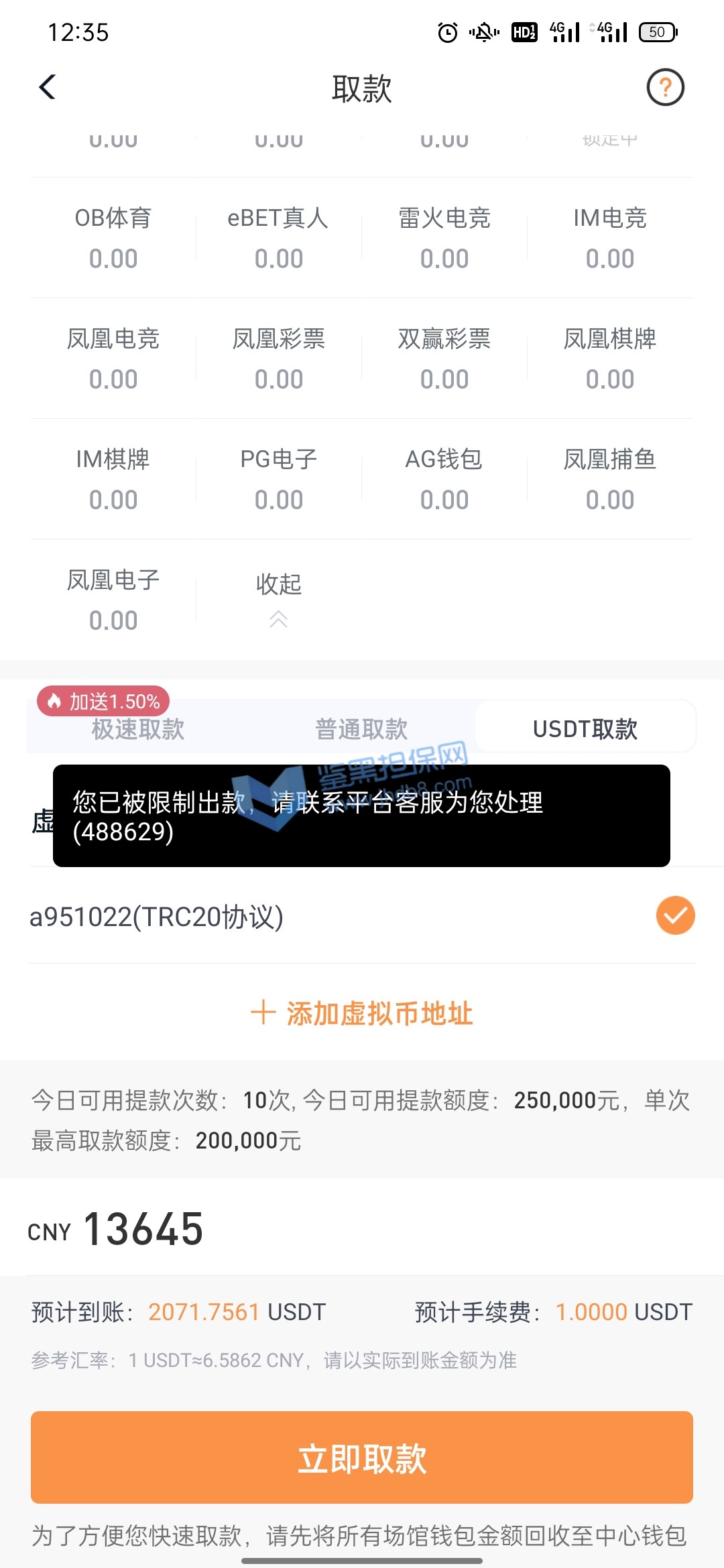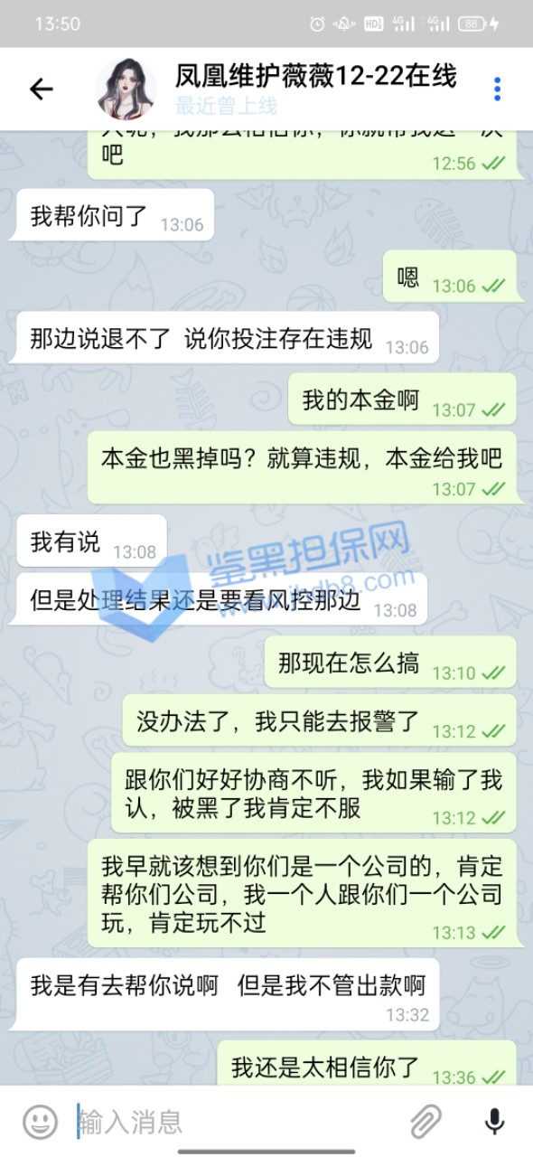 我10月11号支付宝转银行卡存款10000在平台,到账了后我立刻就玩了,途中我支付宝给我发信息这笔款退回了,也就是说没成功到他们那边,那他们给我这10000分怎么弄得,还显示存款成功,我心里面美滋滋的,就没管也没去找诉说,毕竟得了便宜了,等打完流水当时盈利了差不多3645提款显示如图1被限制出款,我就去问客服,客服给我的回答是财务没收到款,优先给我上的分,等财务收到了会处理提款通道!我心里一想这事也没普啊,就没想着提了,也没想过补回了,就去转pg电子玩,结果出乎意料出了很多免费,我就出了免费就退出,出了免费就退出,差不多有三五个这样的免费,一百一转的,当时台面就剩1205,我想的是这么多免费随便一爆也好几万了,存一万补回他们给我优先上的一万就好了。当时也有疑虑还去咨询了我的线下彩金福利,他也说存回去补上就能正常存取了,由于不确定免费到底能爆多少,万一爆不到一万,我存了有啥意义,我就再存前去免费里放了分,一看有12000了,赶紧偷了我妈手机存款完后删除转账记录补上提款赶紧还回来吧,存上后客服刚开始说扣除盈利只留一万本金,我当时就蒙了,想想还有那么多免费,留一万就一万吧,结果没一会直接给我留了1205,我问为什么也是莫名其妙一大推我看不懂的借口,当时心里还是想着只要能正常取款反正有免费在那藏着,只要能给我出,我就不亏,也没多理论,就把台面的1205赶紧试着提款一千,结果没一会到账了,我心里还有点开心,也紧张,就想着应该稳了,就去免费里转,转了一下就爆了一千,我就赶紧又把1210一下子全提了,当时在紧张焦急的等待十来分钟后也到账了,当时台面没有分了,我心想一分没有拿什么赢,就又存进去两百随便打了几下再去放分,这次放了9300提款8000,留了1300在余额,结果就遇到一小时不到账,我就问客服,客服让我提供手持身份证银行卡并写日期的白纸拍照给他们说什么身份验证,我想想也有道理,当时提款心比较急切,就按他们的提交了,提交后来了句要审核七天,我一听就慌了,当时还是相信他们的,毕竟凤凰平台我玩了308天了在这总体肯定是输,直到今天我想登进去看审核进度,才发现设备存在风险,无法使用本平台。下面图都在下面,请鉴黑网帮我维权,被我妈发现我就完了,我给你们跪谢了!!