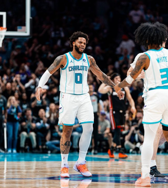 北京时间4月15日,NBA附加赛展开争夺,夏洛特黄蜂队主场逆转赢球。怀特在第四节常规时间命中高难度三分追平拖入加时赛,布里奇斯和鲍尔随后引领球队取得领先,希罗连得6分帮助球队反超,鲍尔突破打进制胜球,米切尔的上篮被布里奇斯封盖,黄蜂队在主场以127-126险胜迈阿密热火队。黄蜂队将等待奥兰多魔术队和费城76人队之间的负者,热火队结束赛季。