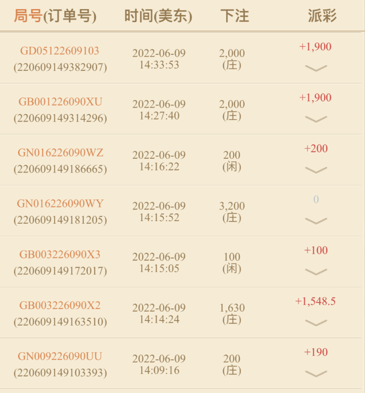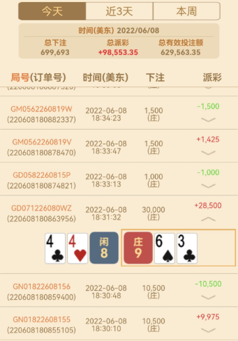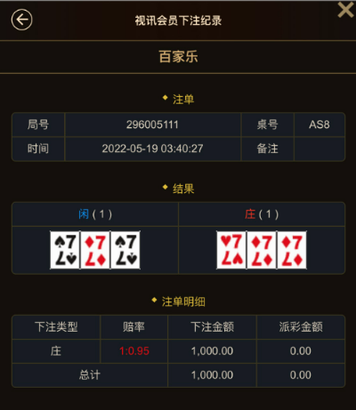2018年五月无意中接触了网赌,以前连麻将的不打的人,刚开始接触一看好多游戏,就充了几百去斗地主一会红了大几百,抓了副好牌没有打赢一把炸太多进去,感觉太假我一出牌他们2个牌都出来了,只玩了一次斗地主就没有玩了。真人炸金花玩了几百感觉也假,只玩一次也不玩了,我就继续看一下看见百家乐现场视频以前根本不知道什么是百家乐,就充了几百,根本不会玩我研究了一下出2个庄就砸闲或者出2个蓝就砸庄,那时根本不会看路。有输有赢因为不会充的少,知道打了一段时间流水不少就是本金少了大几千,就不想玩了觉得打不赢。就研究一下一下看见AG里面的炸金花,那时会看一点路了,觉得炸金花没有和这比百家乐好,研究了一下直接一万充值,进去500砸中继续中五下中3下4下,直接1000中下几下又中,2000就下中中中,就3000下反正赢多输少一直3000下每把都下心里觉得开什么就下什么,3个小时红了7万多想到打到10万就下,心里急了就5000下输一万下输,一会掉下去还到2个的时候提现了,这样算下来我没有输赢。第二天又研究一下,发现出现7个长龙后面出龙的概率很小就觉得可行我可以在出龙后倍投,充值1个,进去半天没有开龙了我先玩几把500中1000中,2000中,赢了大几千。2000输2000输,4000输4000输蒙了,那时不会买长龙看到他开了10把,余额还有6000,看他开完继续这长龙把我的倍投机话打乱了,磨了一天挂了。
