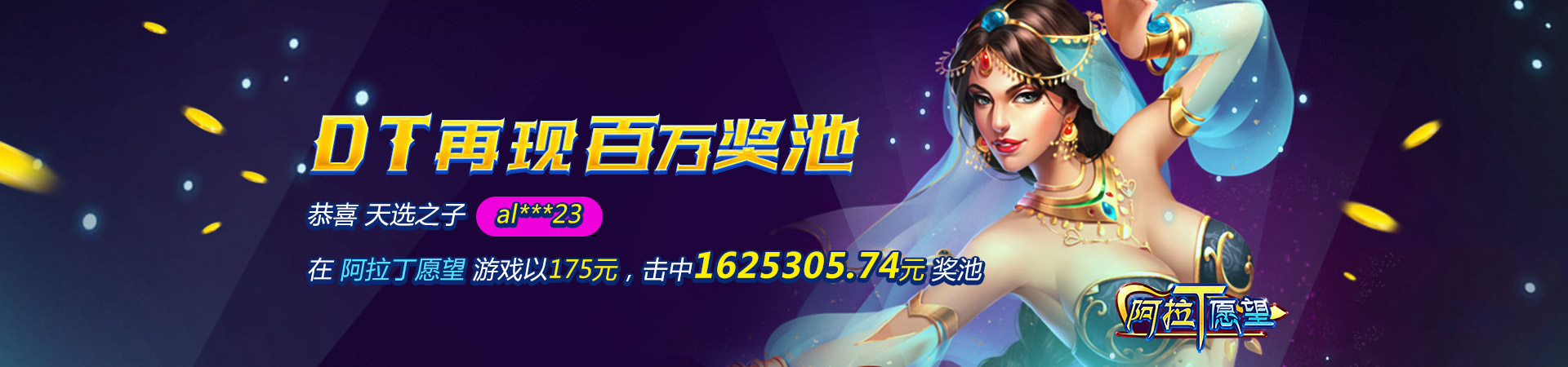 在这里要恭喜玩家AL***23以350元击中奖池1625305.74,找到了他的阿拉丁神灯