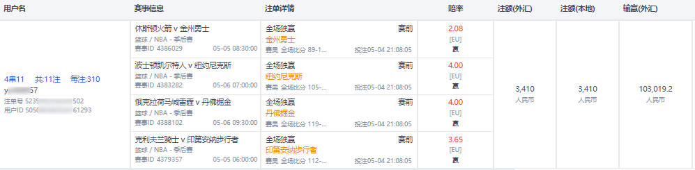 投注金额: 25人民币