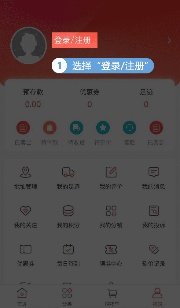 ①打开商城链接【我的】
