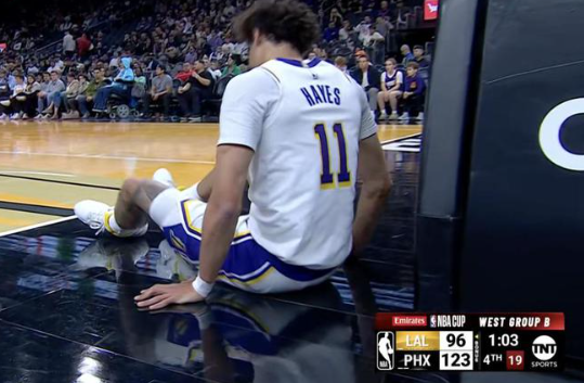 北京时间11月27日,湖人客场100-127惨负太阳,遭遇3连败跌至西部第六,且湖人杯赛9连胜被终结吞下杯赛历史首败。湖人除了输球之外,内线重要轮换海斯时隔6场复出,但他复出首秀就在最后时刻受伤,他在暴扣后受伤倒地被搀扶离场。